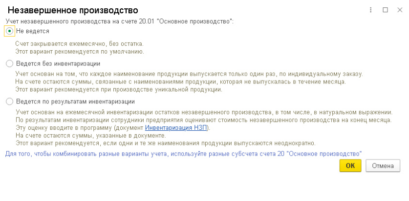 Какие 3 варианта учета НЗП есть в программе