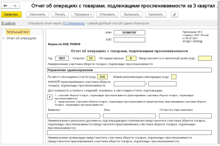 Отчет об операциях с товарами, подлежащими прослеживаемости.