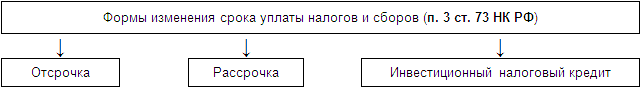 Напомним: в силу п. 1 ст. 64 НК РФ отсрочка (рассрочка) по уплате налога представляет собой изменение срока уплаты налога при наличии установленных Налоговым кодексом оснований на срок, не превышающий один год, соответственно с единовременной или поэтапной уплатой суммы задолженности. При предоставлении отсрочки налог уплачивается единовременно, но в более поздний срок (п. 6 ст. 61 НК РФ), а при рассрочке – не только позднее, но и частями (п. 1 ст. 64 НК РФ).