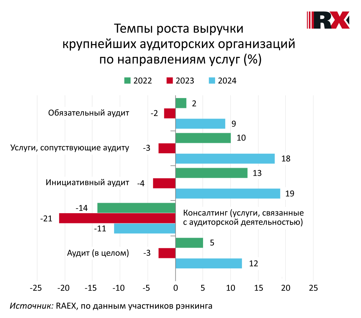 Из 95 участников нынешнего списка 21 организация завершила год снижением выручки. Из первой десятки (82 % выручки по рэнкингу) незначительное снижение доходов наблюдается всего у трёх компаний (в среднем в пределах 2 %, а суммарно — 372,7 млн рублей). Надежду на развитие указанных положительных тенденций даёт опрос участников рэнкинга, проведённый RAEX: по данным 52 компаний (из 95), их суммарная выручка за первые два месяца 2025 года увеличилась на 5 % по сравнению с аналогичным периодом прошлого года. Это даёт основание предположить, что для аудиторских компаний переходный период завершается: обвал рынка из-за ухода иностранных заказчиков постепенно восполняется спросом со стороны локальных клиентов.