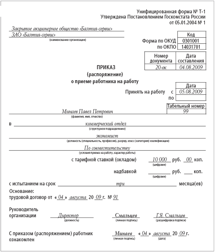 Каких-либо особых требований к оформлению кадровых документов для совместителей Трудовой кодекс не содержит. И все же вопросы возникают, чаще всего они касаются внутренних совместителей. Например, нужно ли оформлять обязательные кадровые документы в отношении каждой из занимаемых работником должностей (приказ о приеме на работу, об отпуске и т. п.). Отвечаем, обязательные кадровые документы нужно оформлять по каждой занимаемой должности (основной и по совместительству). Так как речь идет о работе по двум разным трудовым договорам и здесь очень важно зафиксировать на бумаге все определенные законом составляющие трудовых отношений в рамках каждого договора (переводы, перемещения, отпуска, увольнения).