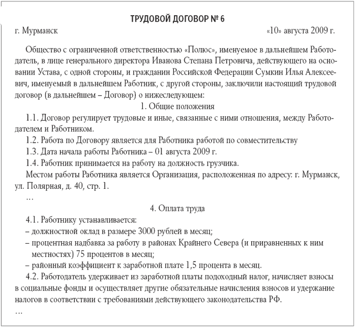 Часто считают совместителями работников, работающих неполный рабочий день. Это далеко не так. Работник и работодатель вправе договариваться о продолжительности рабочего времени (ст. 57 ТК РФ). Поэтому сотрудник вполне может работать половину дня и не быть совместителем. Например, это может быть работа на условиях неполного рабочего времени (ст. 93 ТК РФ). В этом случае место работы будет для работника основным. И то, что работник не вырабатывает полный рабочий день, совместителем его не делает. На сайте www.kdelo.ru в электронной версии статьи вы сможете найти дополнительный образец гражданско-правового договора об оказании услуг.