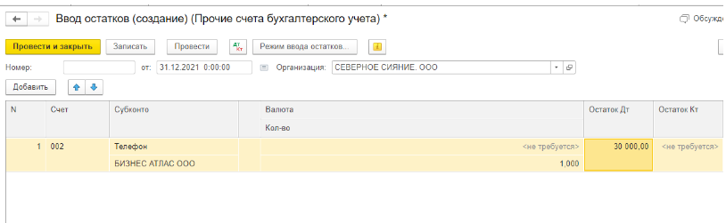 Для ввода начальных остатков разработчики программы придумали балансовый счет «000», который регулирует правильность ввода остатков.