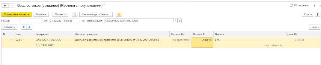 Ввод начальных остатков по расчетам с покупателями